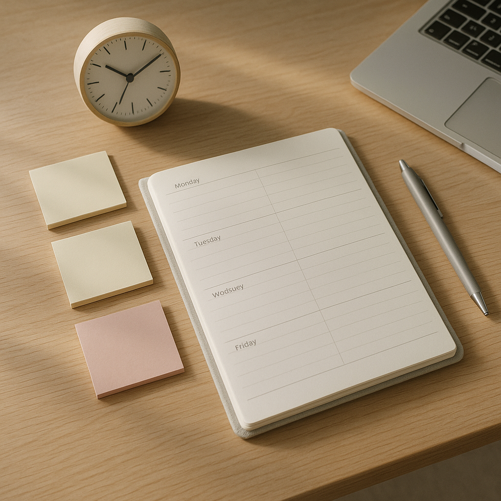 Det afgørende er stabil gentagelse – ikke perfektion. Planlæg buffer til det uforudsete, og luk ned for detaljer, der ikke flytter noget. Brug korte tilbageblik: Hvad virkede denne uge, hvad drænede energi, hvad fjerner jeg næste gang? Når rytmen falder ud, genstart med ét mikroskridt i stedet for at indhente alt. På den måde bevarer du momentum og ro i hverdagen. Sæt en kort påmindelse til ugens check‑in, så rytmen bliver en vane.
